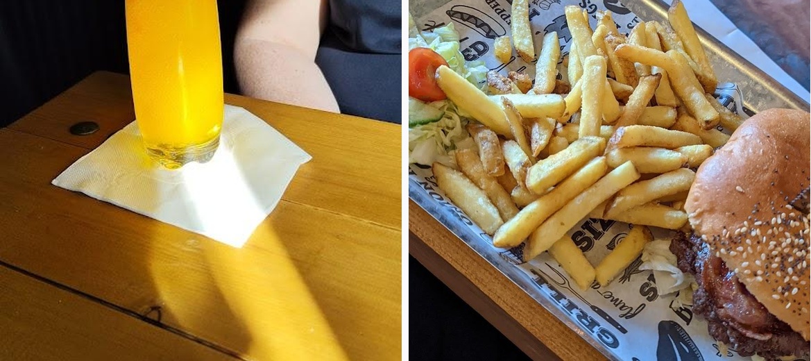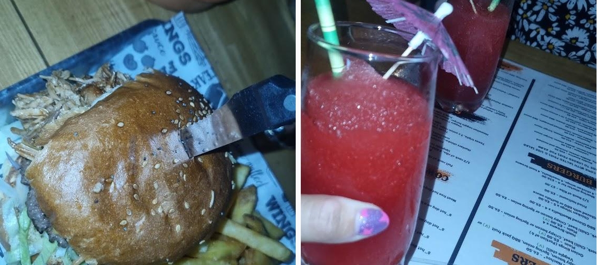 We wanted to try something different, rather than a hungry horse or something similar. We decided to try here. Walked in and was not impressed to be honest. But don’t let the look put you off. Staff were fabulous. We had 2 courses for £13. We got hash brown loaded with chilli beef to start, approximately 3-4 hash browns each, it truly was 10/10. For main I had chicken burger (Ohio) and hubby got beef with bacon burger (Louisiana) served with chips. The portions are large and couldn’t eat it. I had a can of tango and hubby had large red wine. Total £32. Top place, we will come again soon ☺️